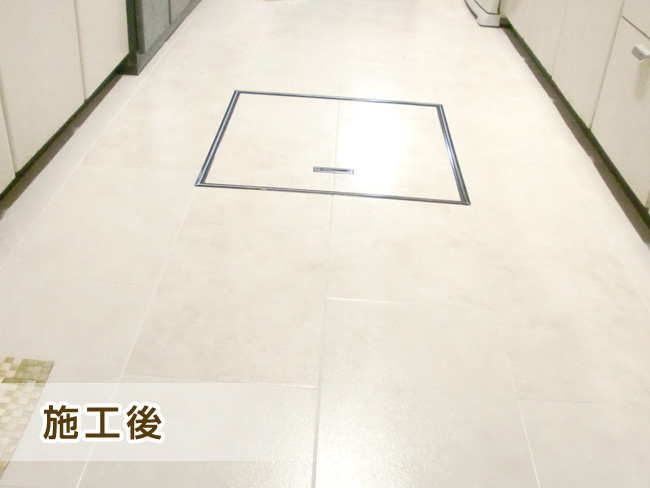 リビングの床が古くなってしまったとのことで、貼り替えのご依頼がありました。せっかく貼り替えるならオシャレな感じにしてほしいとのご希望でしたので、クッションフロアからタイル調のフロアへ貼り替えました。非常に喜んでいただけました。