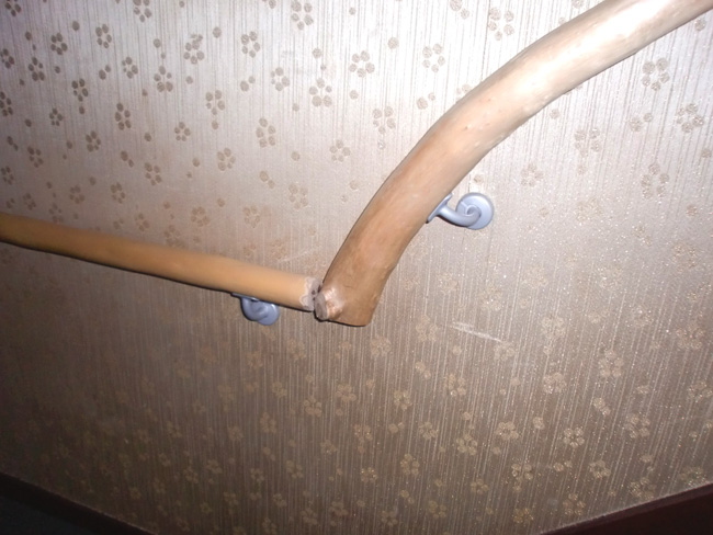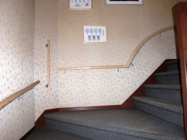 銘木を利用し、オリジナルで手すりを作り取り付けました。木で作っている為、寒い冬でも抵抗なく手すりを持つことができると、お客様には喜んで頂きました。