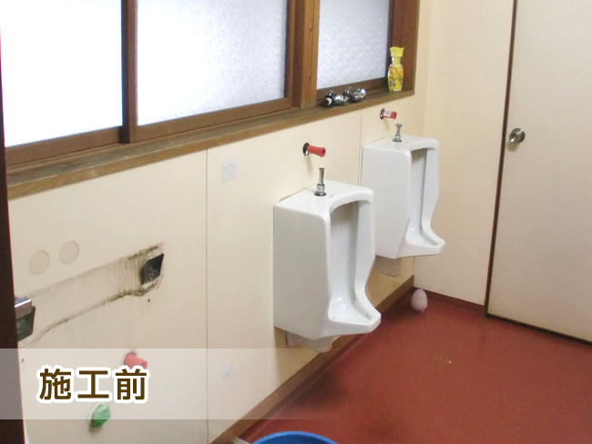 小便器などの器具類を再利用し、和風の建物に合わせて内装をリフォームしました。すべてがおまかせとのことだったのですが、想像以上の出来だと喜んでいただきました。
