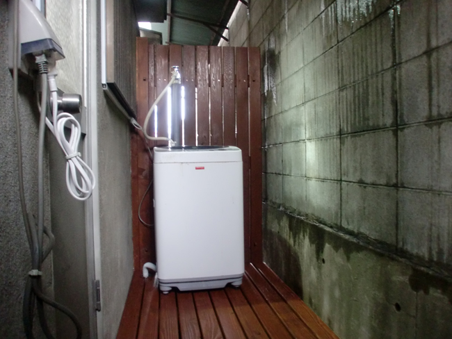 室内にあった洗濯機が生活空間を狭めていたので、家の裏のスペースを友好的に利用できればと思い、ウット゛テ゛ッキ調のハ゛ルコニーを造りました。
